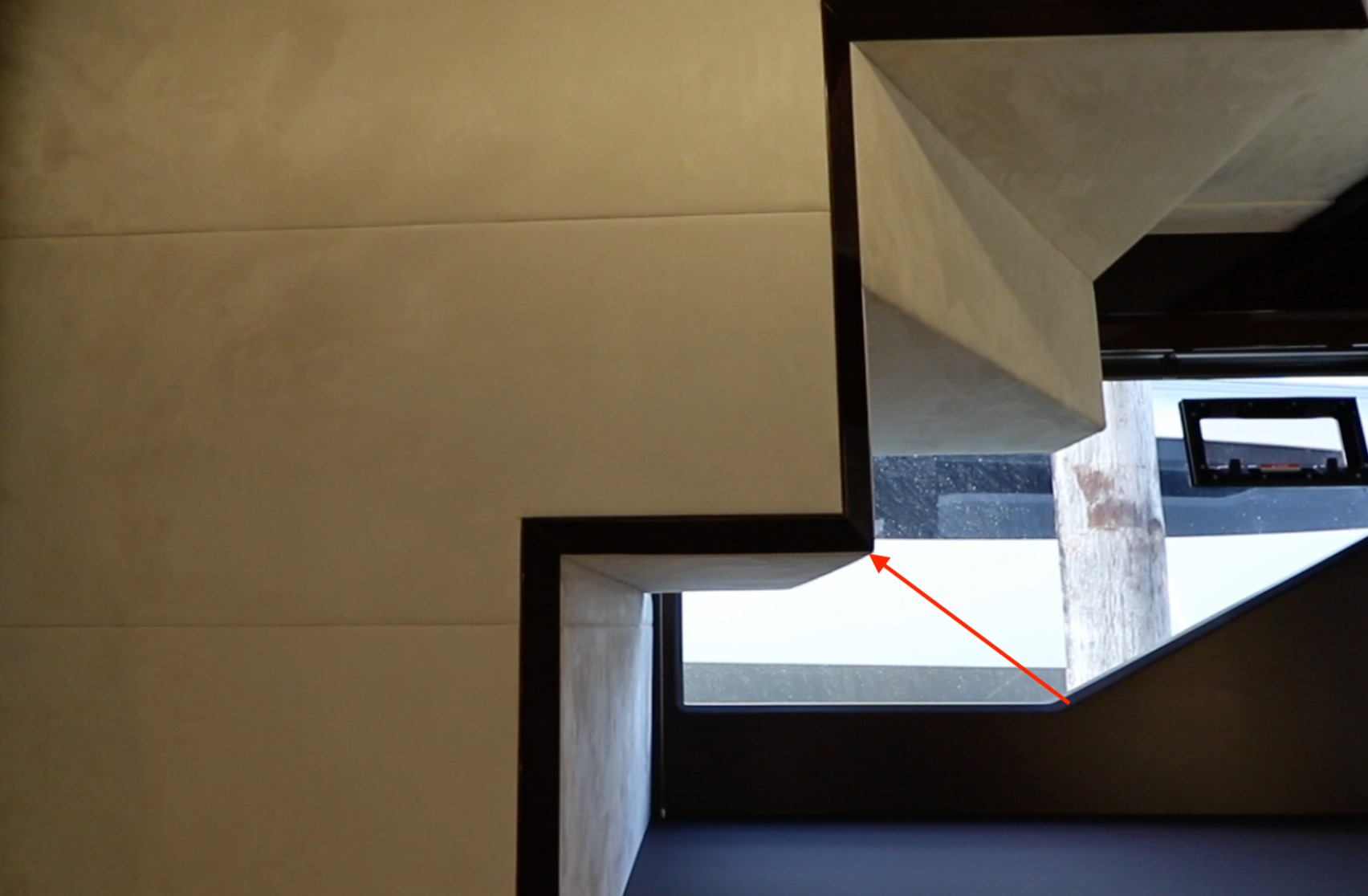 Các điểm nhấn ở phía trên bao gồm các đường diềm điều hòa nhiệt độ khiến bạn dễ dàng bỏ lỡ chúng hoàn toàn. Chiếc TV thẩm mỹ viện vươn ra khỏi tủ để sang mạn phải. Chuyển tiếp đến cảng là cầu thang lên boong phòng nghỉ.