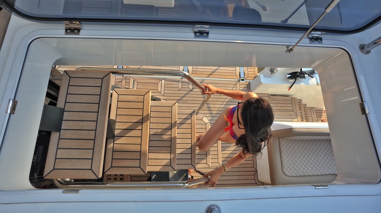 Galeon 420 FLY mang đến một trong những nội thất rộng rãi và sang trọng nhất trong phân khúc. Ngoại thất tuyệt đẹp theo xu hướng mới nhất và sẽ phù hợp với thị hiếu của cả những người đam mê thể thao và sự hiện đại. Cầu bay đặc biệt được trang bị một khu bếp với đầy đủ chức năng với tủ lạnh và bếp nướng, sàn tắm nắng khá lớn cộng với khu vực nghỉ ngơi và ăn uống dành cho tám người.