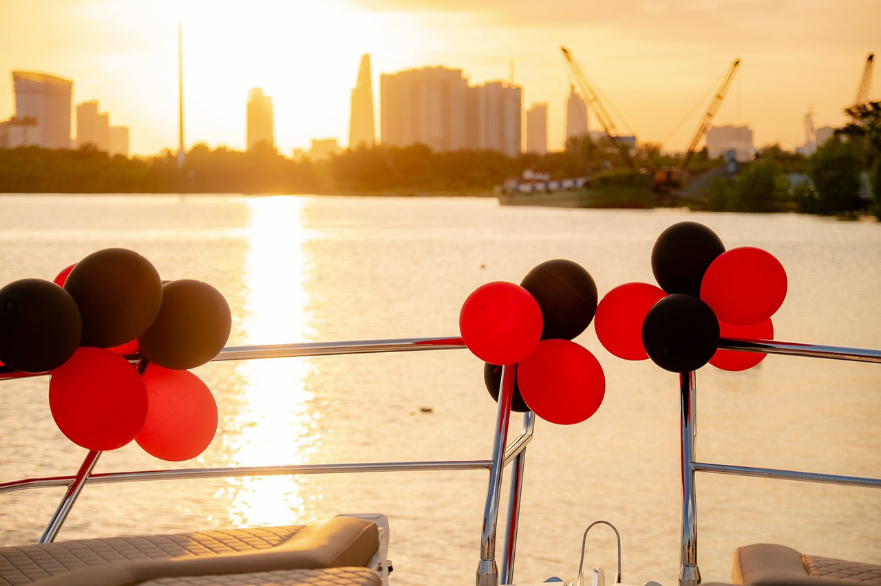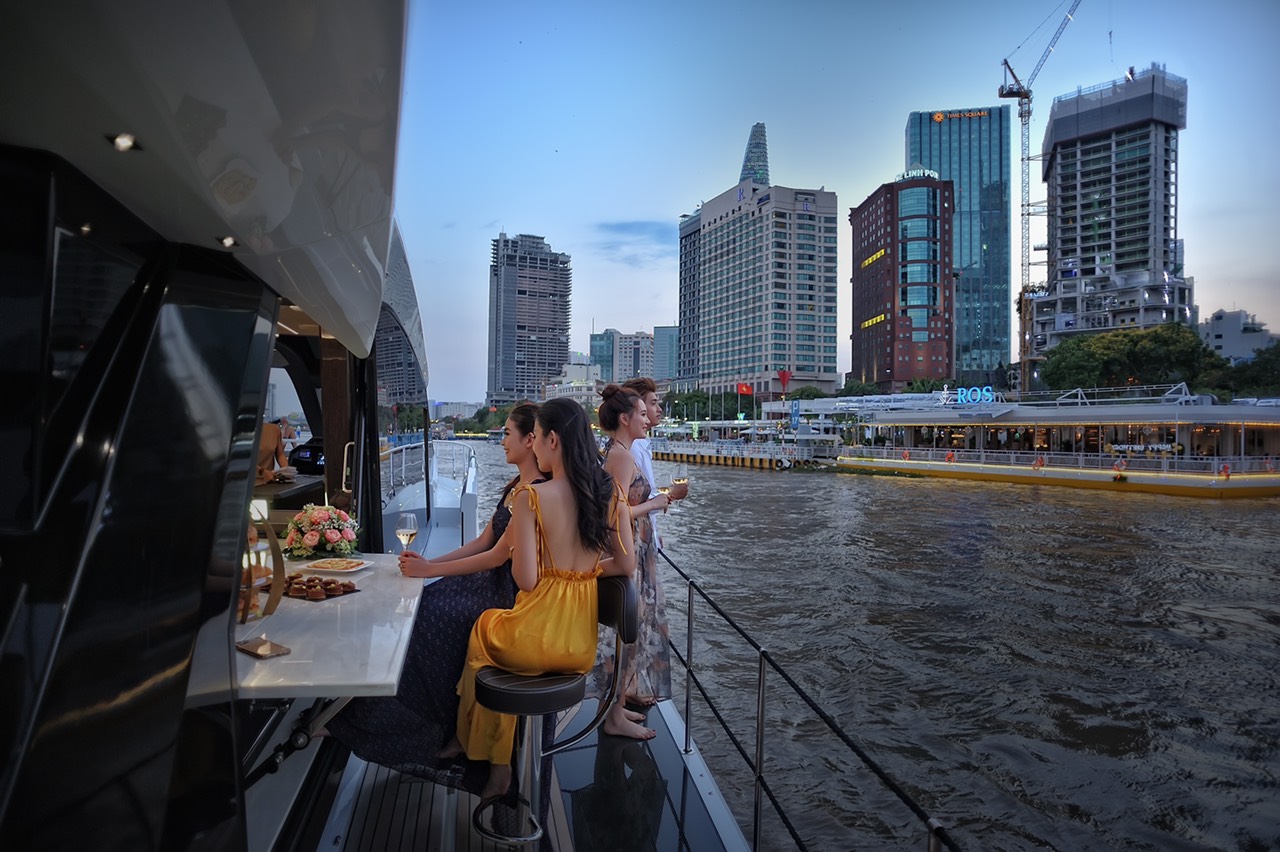Còn gì tuyệt vời hơn khi cùng người thân yêu, bạn bè ngồi trên một chiếc du thuyền sang trọng, đẳng cấp. Rồi cùng thưởng thức ly rượu vang trên tay và ngắm nhìn khung cảnh của thành phố lúc hoàng hôn tuyệt đẹp, được phản chiếu bởi dòng sông Sài Gòn thơ mộng.